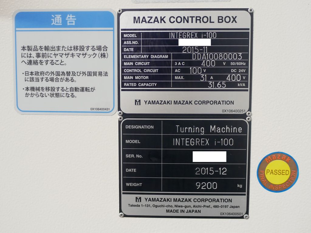 保管場所: Head office. Machine Plaza型式: Integrex i-100