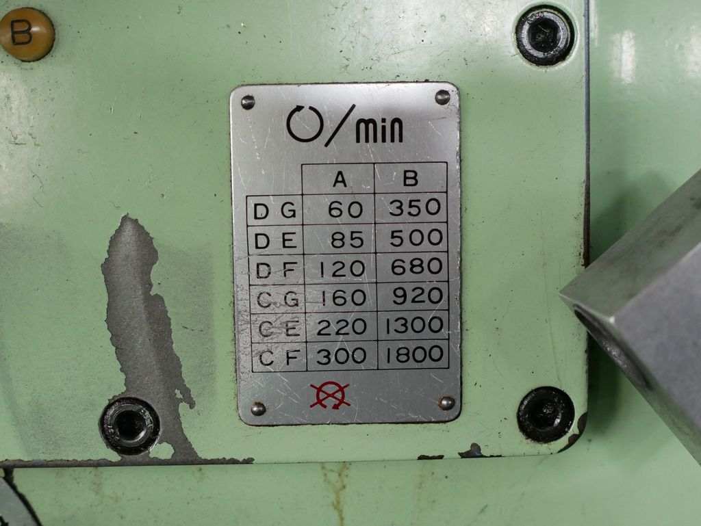 ◆Spindle rotation speeds: 60, 85, 120, 160, 220, 300, 350, 500, 680, 920, 1300, 1800