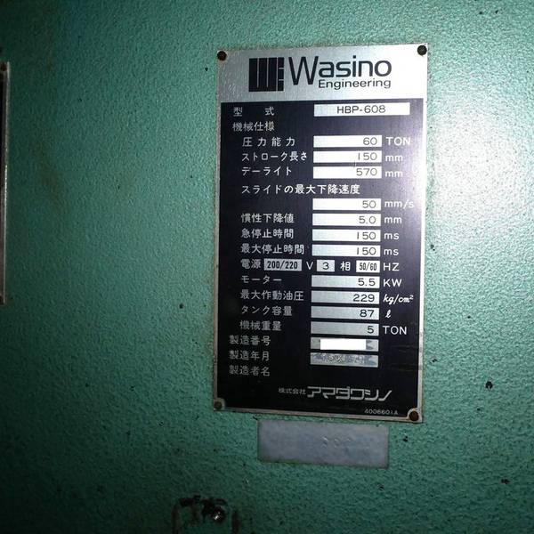 保管場所: Head office. Machine Plaza型式: HBP-608