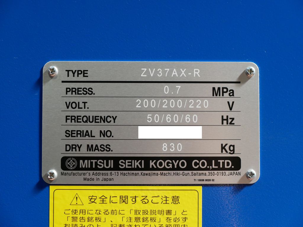 ◆PRESS: 0.7MPa◆VOLT: 200/200/220V◆50/60/60Hz◆Dimensions: W1750×D750×H1550mm◆Weight: 830kg✤In case of discrepancies between specifications and the actual product, the actual product will take precedence.