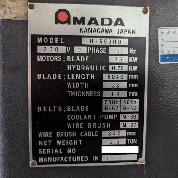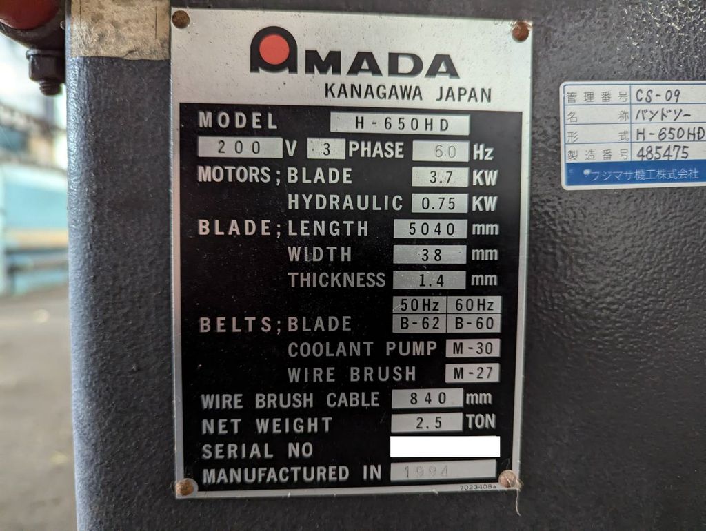 ◆切削能力 0°(直角):W650×H400◆切削能力 45°:W300×H300◆鋸刃寸法:〈GLB〉W38×T1.3×L5040◆鋸刃速度:27,40,50,60,70m/min◆許容積載重量:1500kg◆機械重量:2500kg✤仕様と現品に相違ある場合は、現品優先とさせて頂きます。