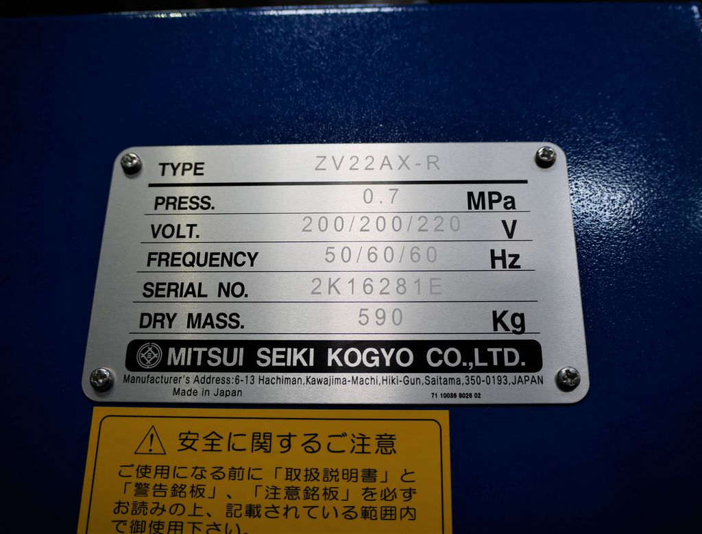◆PRESS:0.7MPa◆VOLT:200/200/220V◆50/60/60Hz◆寸法:W1280×D750×H1570mm◆重量:590kg✤仕様と現品に相違ある場合は、現品優先とさせて頂きます。